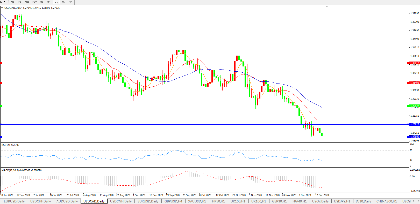 美元兑加元USDCAD 日线图: