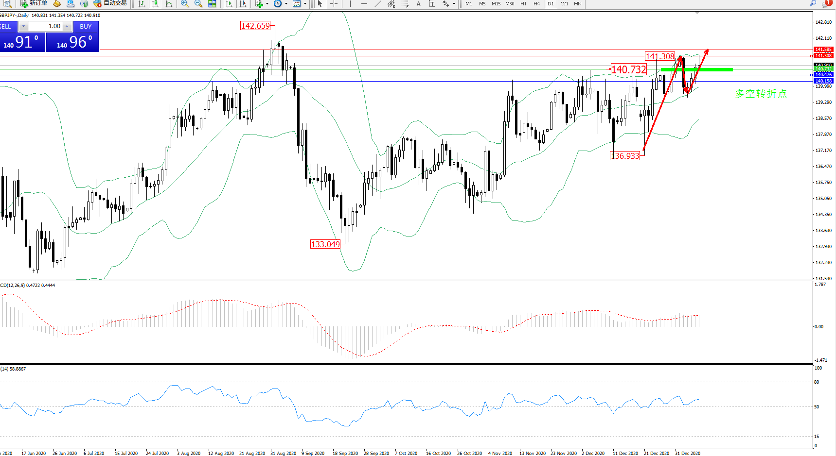 交易策略:140.732上方看涨,目标141.308、141.585