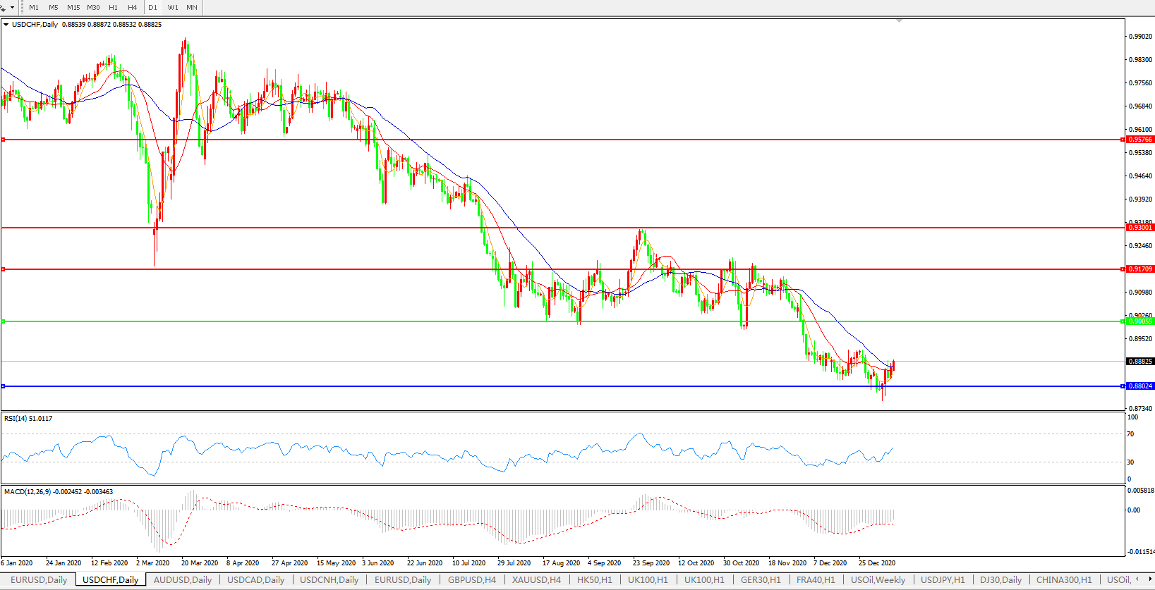美元兑瑞郎USDCHF    日线图: