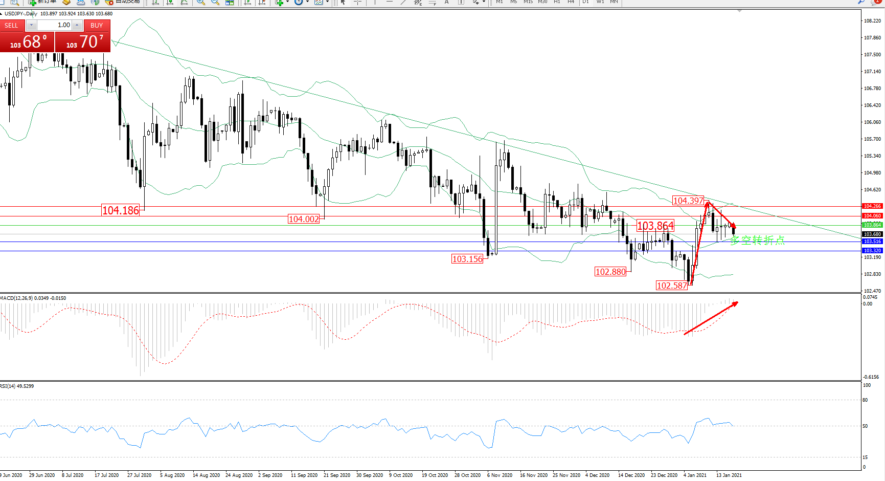 多空转折点:103.864