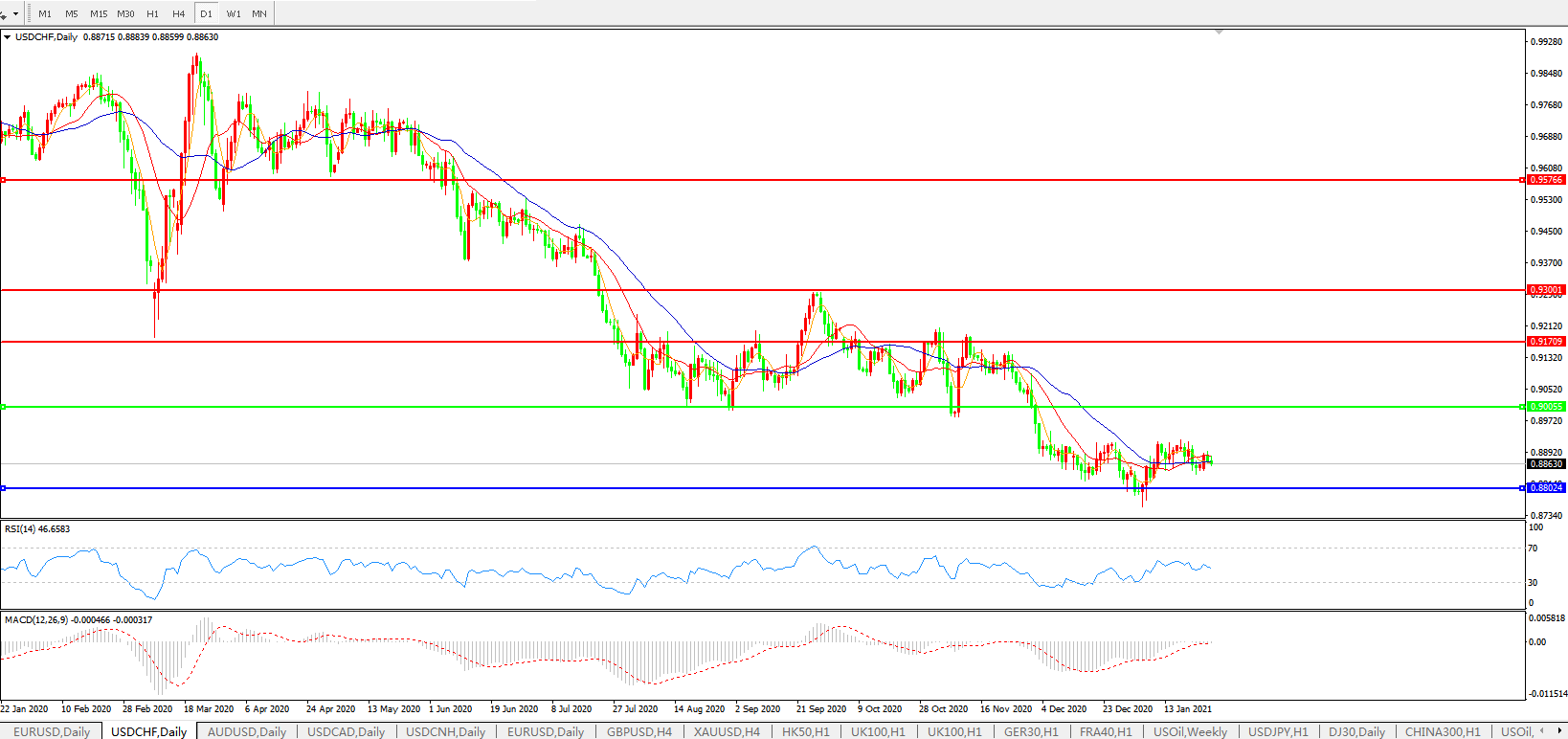 美元兑瑞郎USDCHF    日线图:
