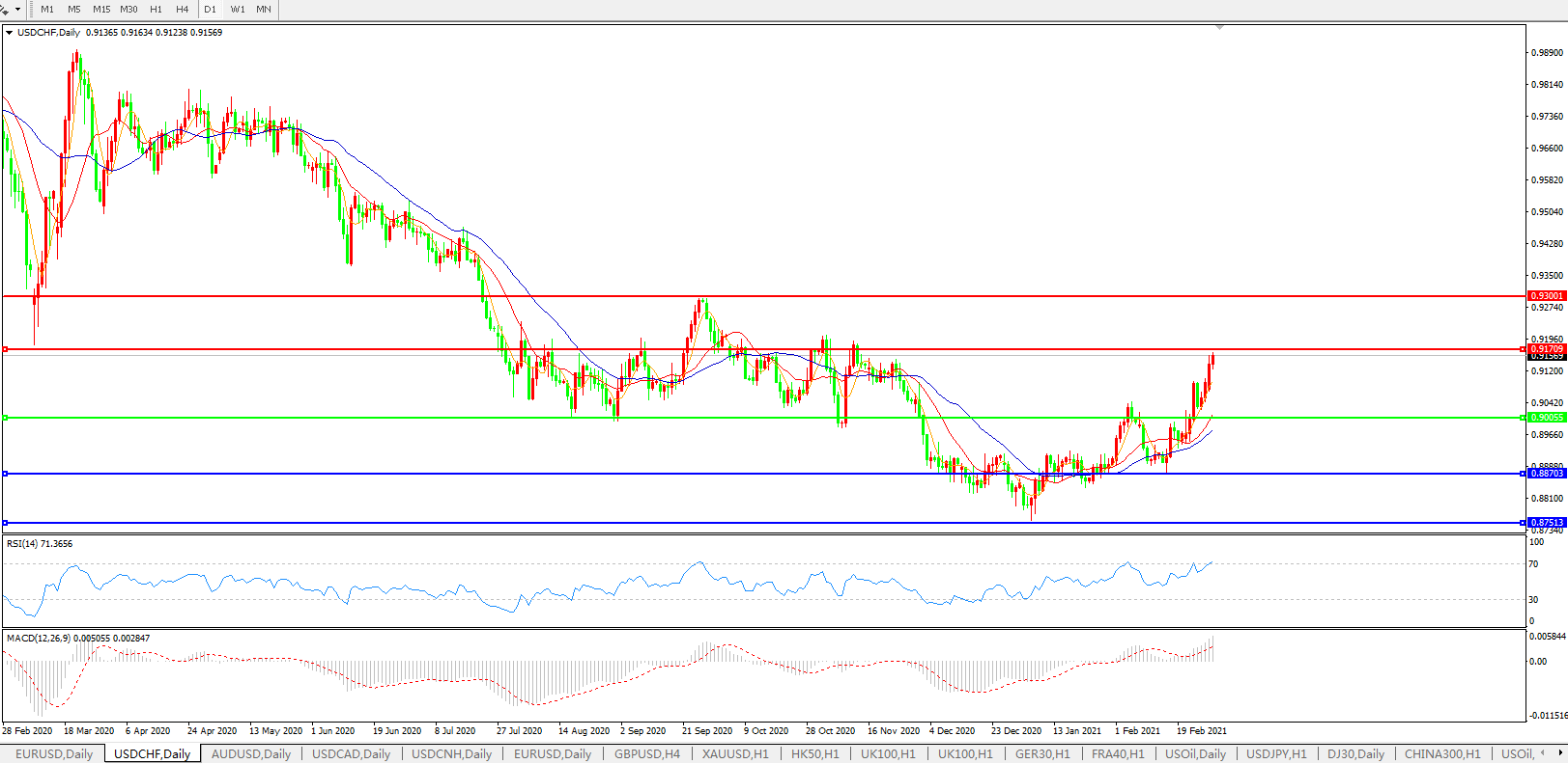 美元兑瑞郎USDCHF    日线图: