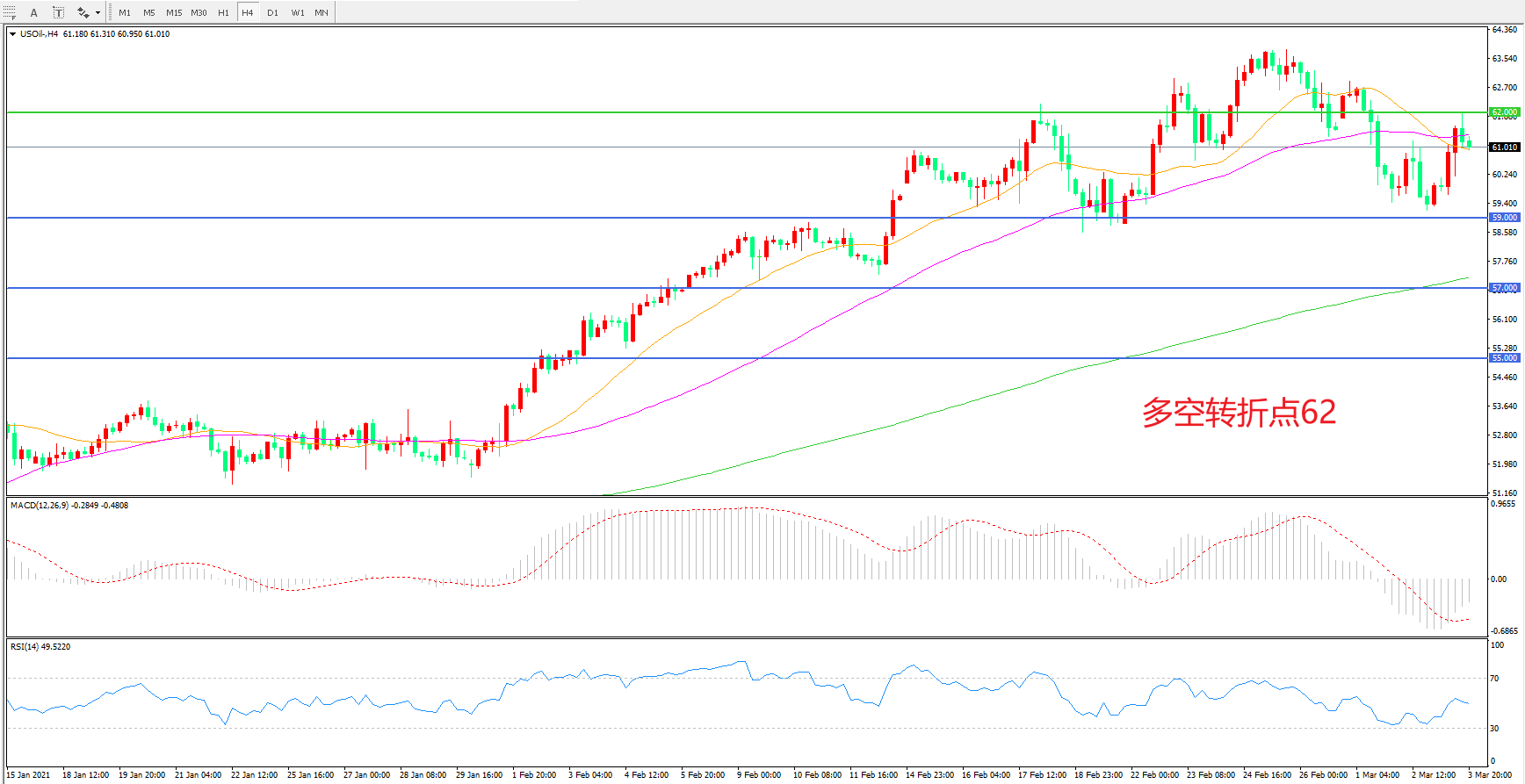 多空转折点:62.00