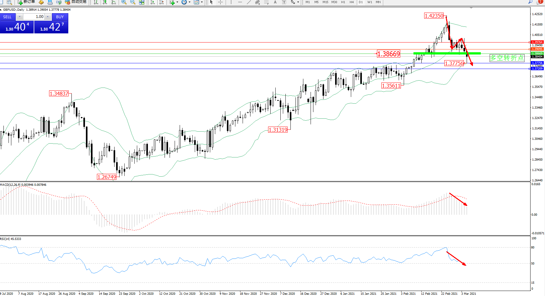 交易策略:1.38669下方看跌,目标1.37756、1.37209