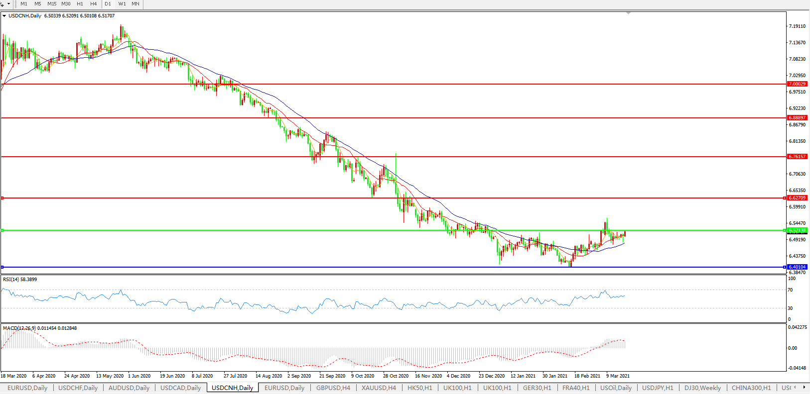 备选策略: 在6.5200之上,看涨,目标价位为6.6300,然后为6.7615。