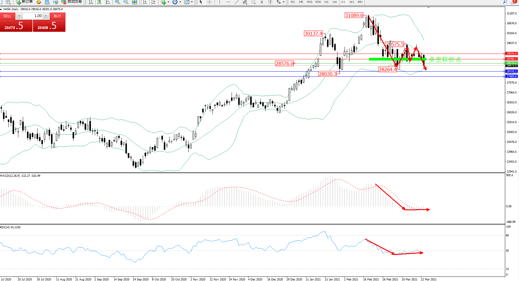 恒指HK50 ——日K线图显示: