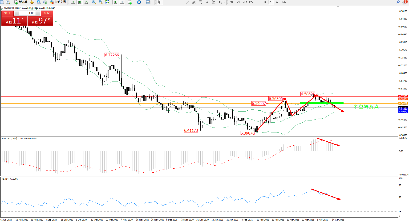 交易策略:6.54007下方看跌,目标6.51318、6.49972