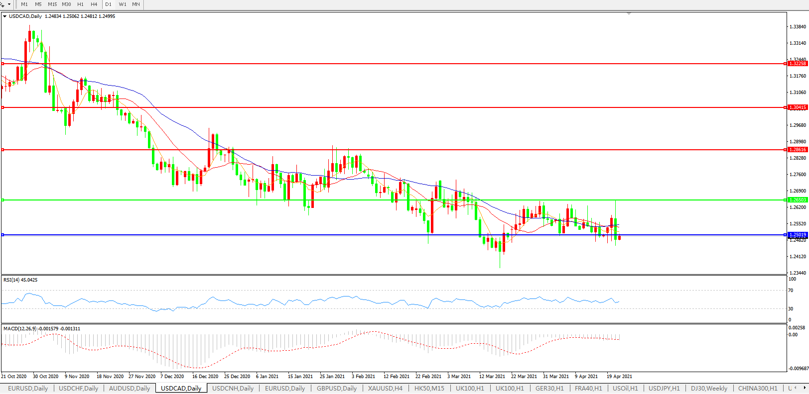 美元兑加元USDCAD 日线图: