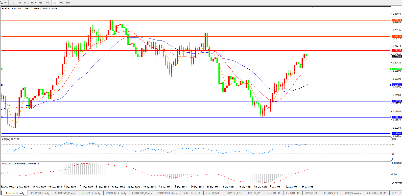 欧元兑美元EURUSD 日线图: