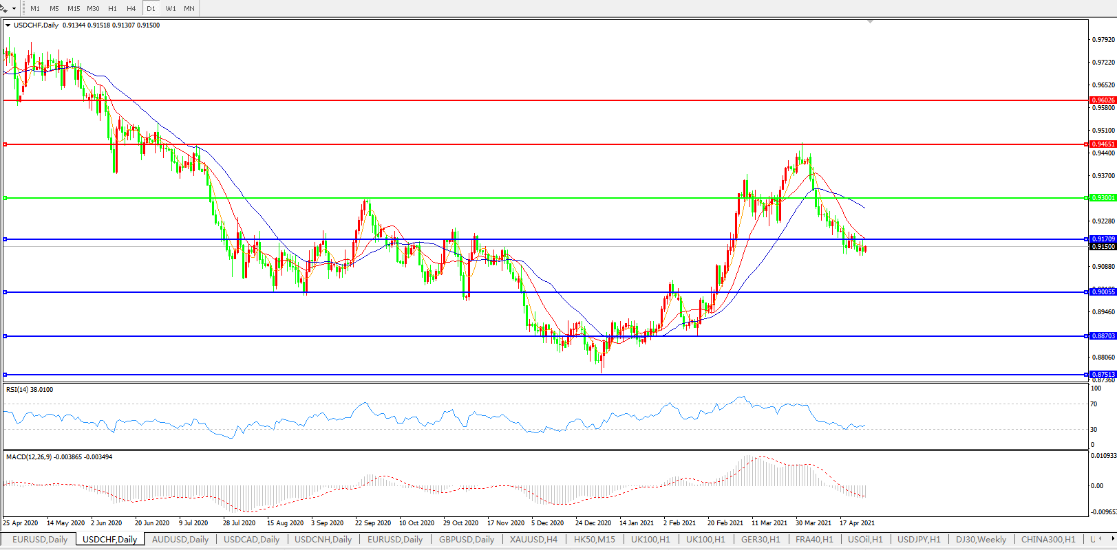 美元兑瑞郎USDCHF 日线图: