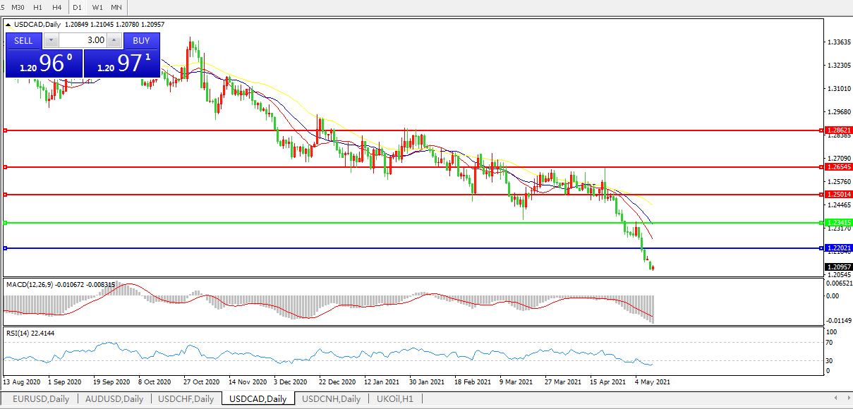 美元兑加元USDCAD 日线图: