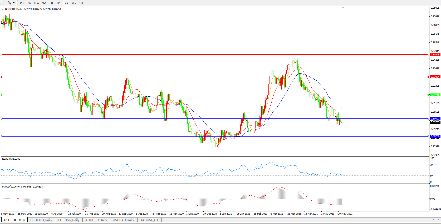 美元兑瑞郎USDCHF    日线图: