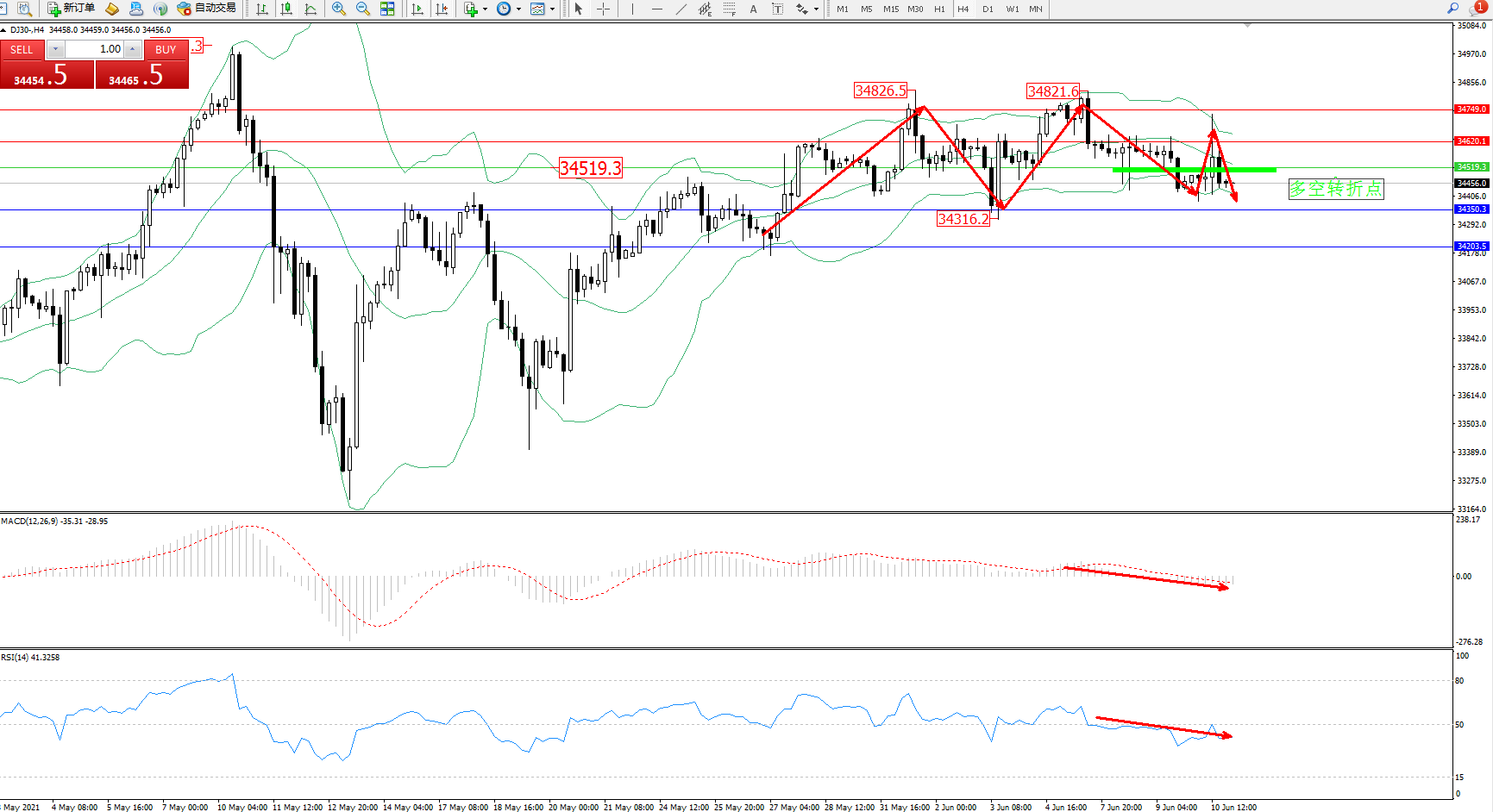 道琼斯指数6月10日(周四)收盘上涨18.63点,涨幅0.05%,报34465.77点;美国股市周四攀升至纪录高位,基准国债收益率跌至3月以来的最低点,因为投资者猜测,即便数据显示上月消费者价格涨幅超过预期,美联储仍将维持其超宽松政策。5月份美国消费者价格指数延续了数月以来的攀升势头,在经济走强之际带来了通胀压力变得更加稳固的风险;由于通胀预期强劲上升,CPI数据公布后美债实际收益率回落,目前CPI仍在继续上升,但在基数效应和被压抑的需求影响之下,它可能无法对激烈的通胀争论给出明确的答案,你需要从债券市场寻找线索,10年期美国国债收益率回到3月初的水平,这表明债券市场正在逐步认同美联储的观点,即通胀上升是暂时的,不足以促使其短期内缩减货币刺激措施。