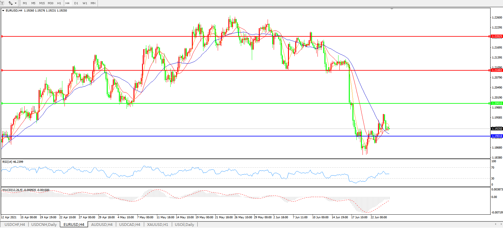 欧元兑美元EURUSD   4小时图: