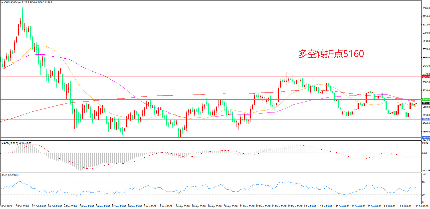4小时图看,沪深300延续高位震荡,整体表现偏强,均线系统粘合成为上方阻力,5025成为下方支撑,MACD绿柱缩短,RSI指标走平,日内震荡上行概率较大。