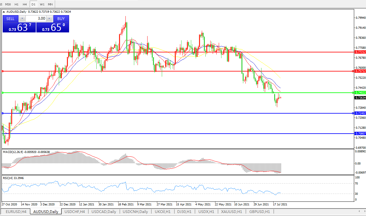 交易策略:0.7400下方看跌,目标0.7240、0.7080