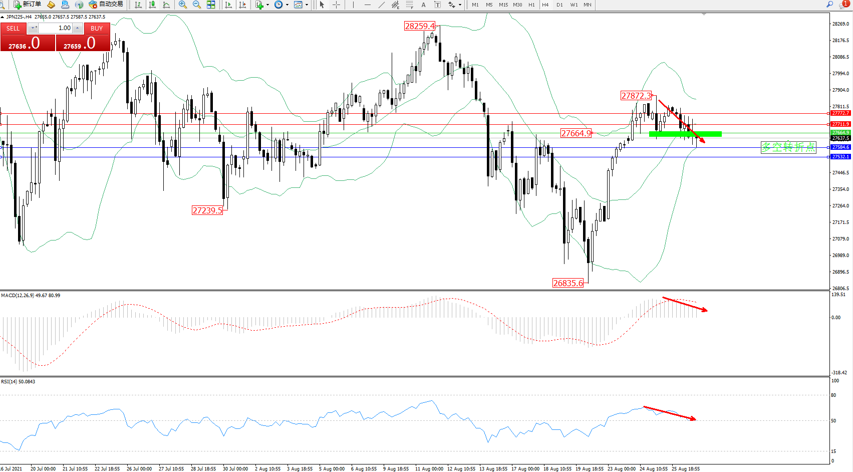 日经225指数8月26日(周四)收盘上涨4.20点,涨幅0.02%,报27729.00点。据日本时事通讯社:日本自民党石原派将支持日本首相菅义伟担任下一届自民党总裁。日本首相菅义伟称,已指示卫生部优先考虑安全性并处理莫德纳疫苗污染问题。莫德纳疫苗出现的问题不会对疫苗接种计划造成很大影响。日本政府称预计部分地区经济将进一步疲软。8月经济评估保持不变,但前景比7月略为悲观。下调对进口商品的看法。