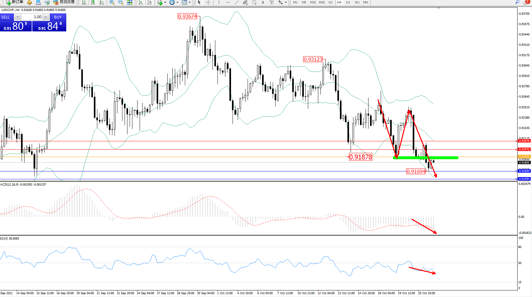 美元瑞郎USDCHF——4小时K线图显示:
