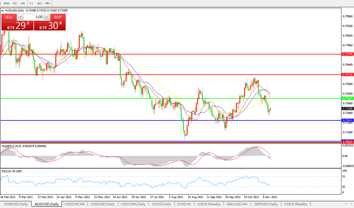 交易策略:0.7400下方看跌,目标0.7240、0.7080
