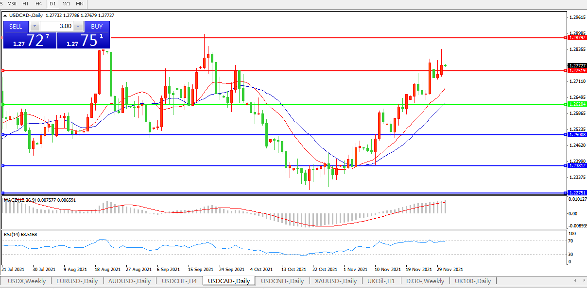美元兑加元USDCAD    日线图: