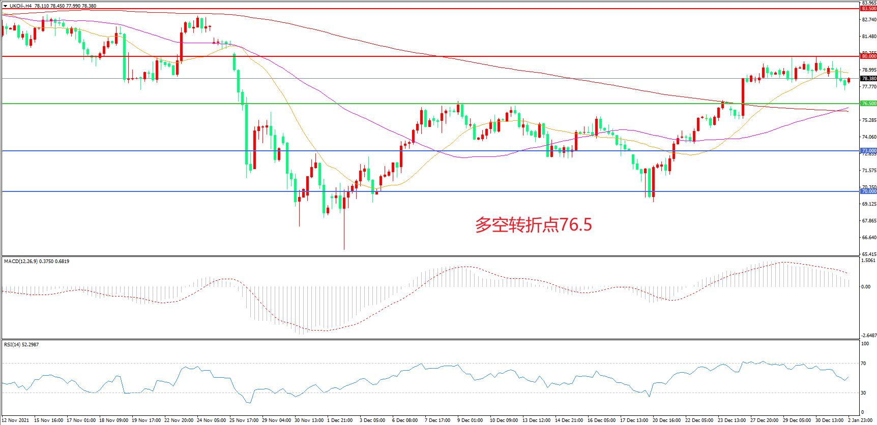 交易策略:在76.50之上看涨,目标80. 00 83.00
