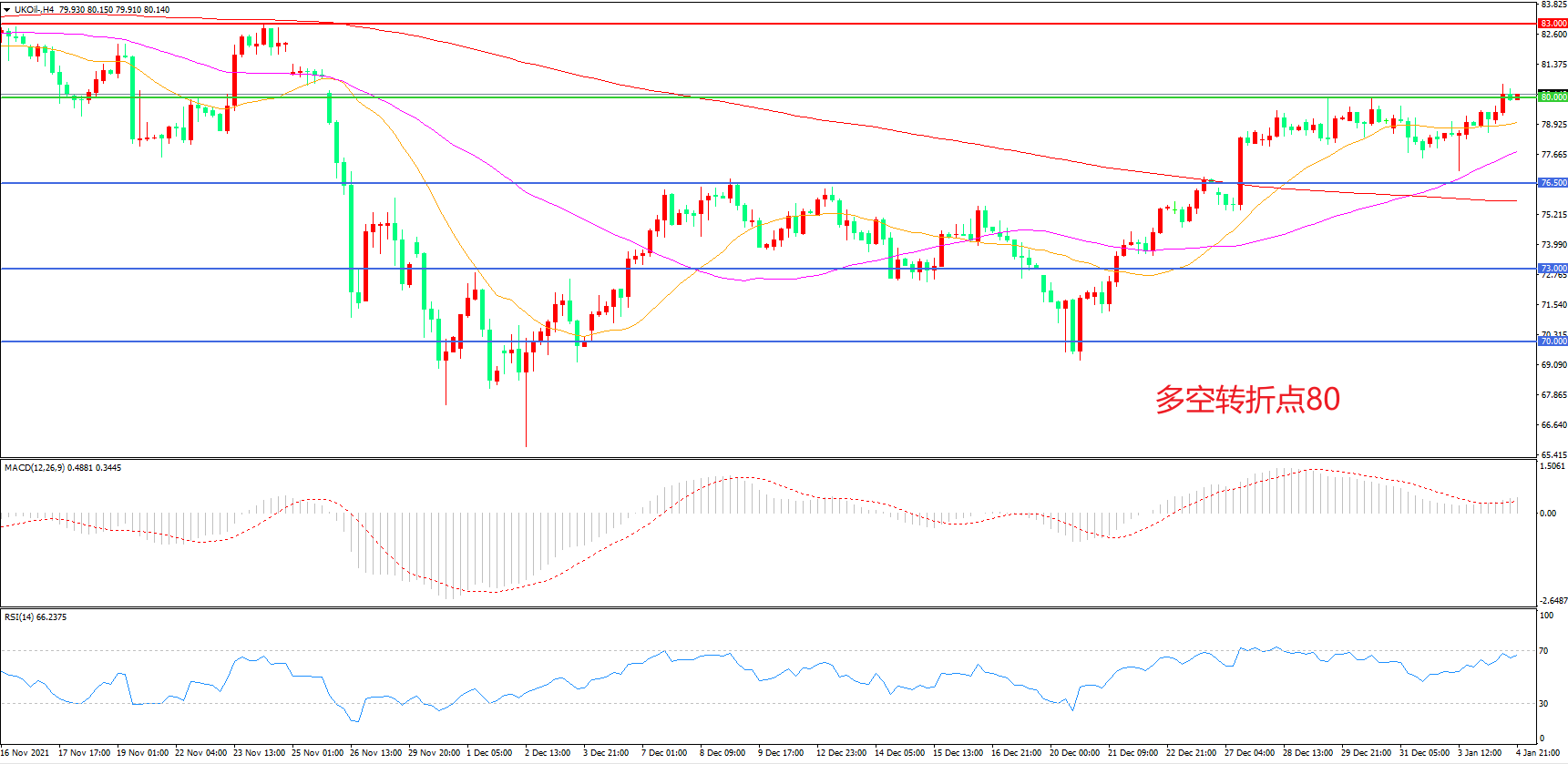 交易策略:在80.00之上看涨,目标83. 00              85.00