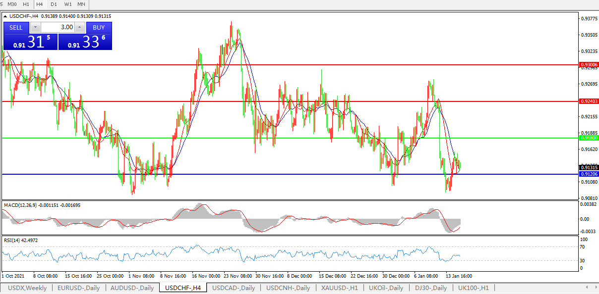 美元兑瑞郎USDCHF 4小时图: