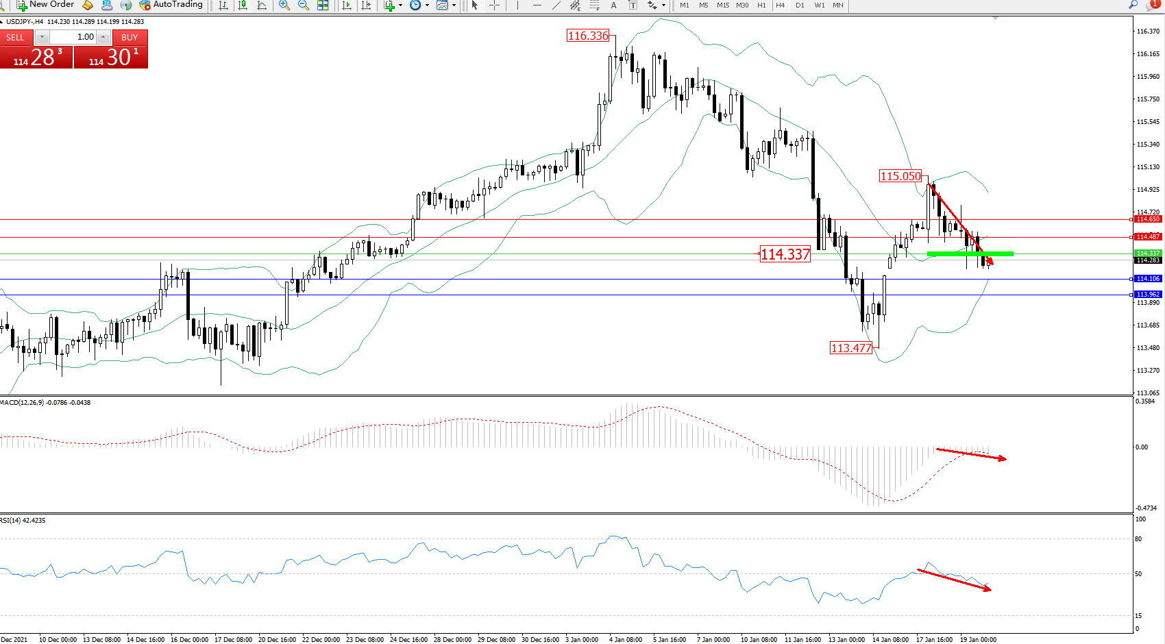 交易策略:114.337下方看跌,目标114.106、113.962