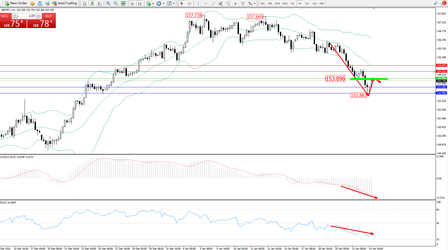 技术点评:空头动力延续布林带指标下轨附近持续震荡下行,低位抵达152.883位置节点后开始震荡回升,但整体下行趋势态势良好,短期依旧有进一步向下移动态势,布林带指标呈张口走势持续中,MACD指标处于空头区域维持震荡下行,RSI指标处于空头区域维持震荡下行整理;