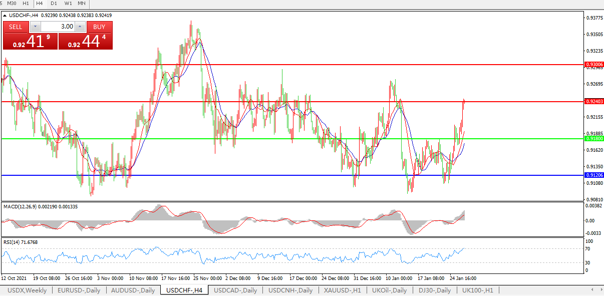 美大举收紧没有余地,美元兑瑞郎持续上行
