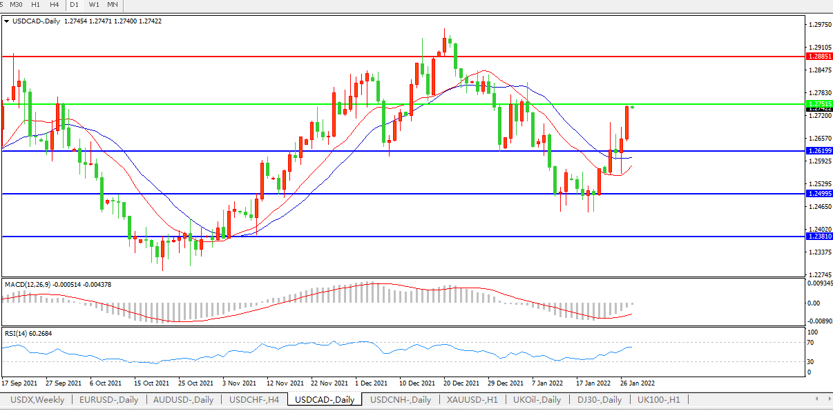 美元兑加元USDCAD 日线图: