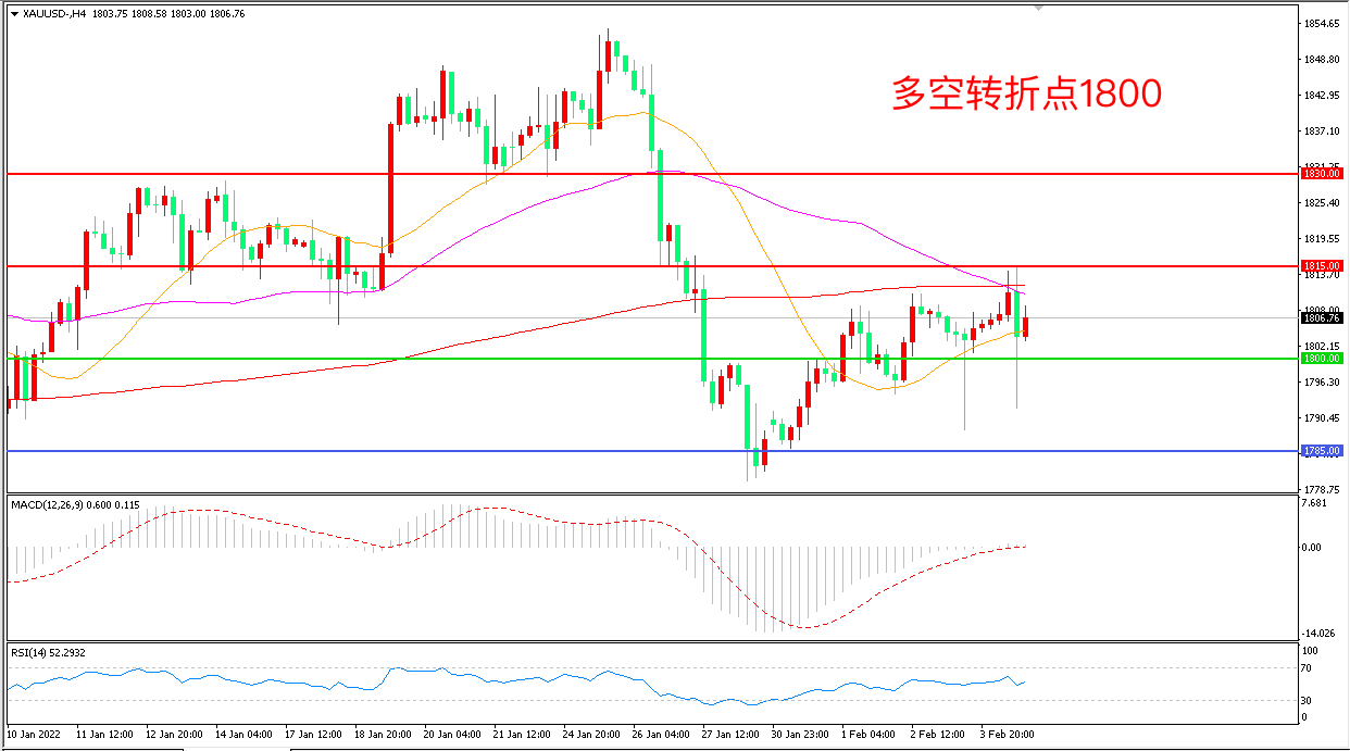 交易策略:在1800.00之上看涨,目标1815.00       1830.00