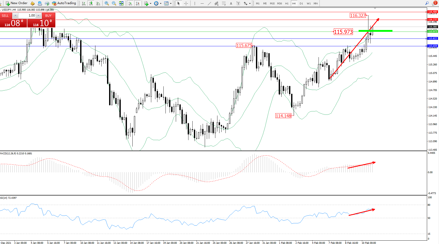 交易策略:115.973上方看涨,目标116.232、116.400