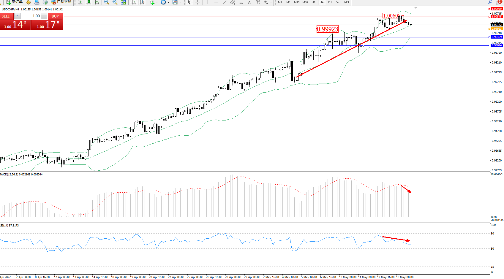 美元瑞郎USDCHF——4小时K线图显示: