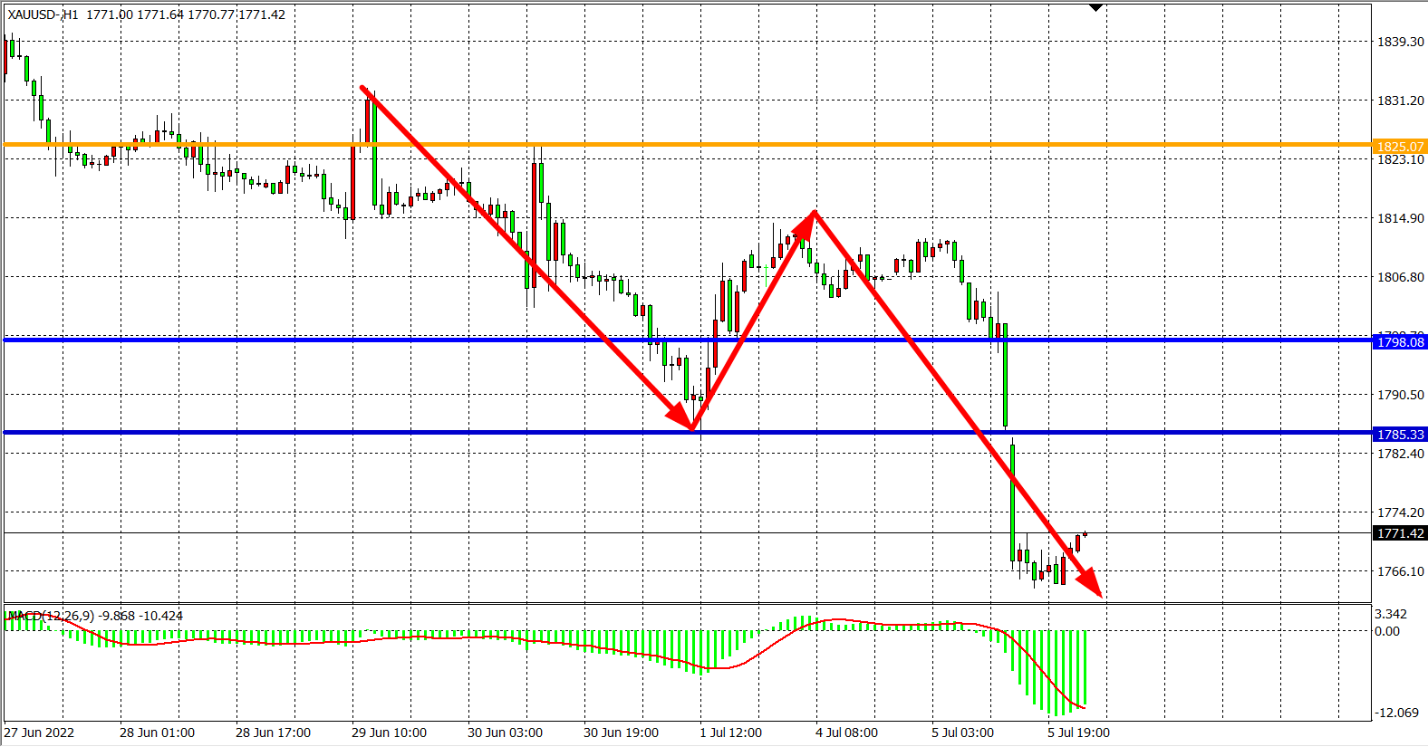 现货黄金XAUUSD    1小时图