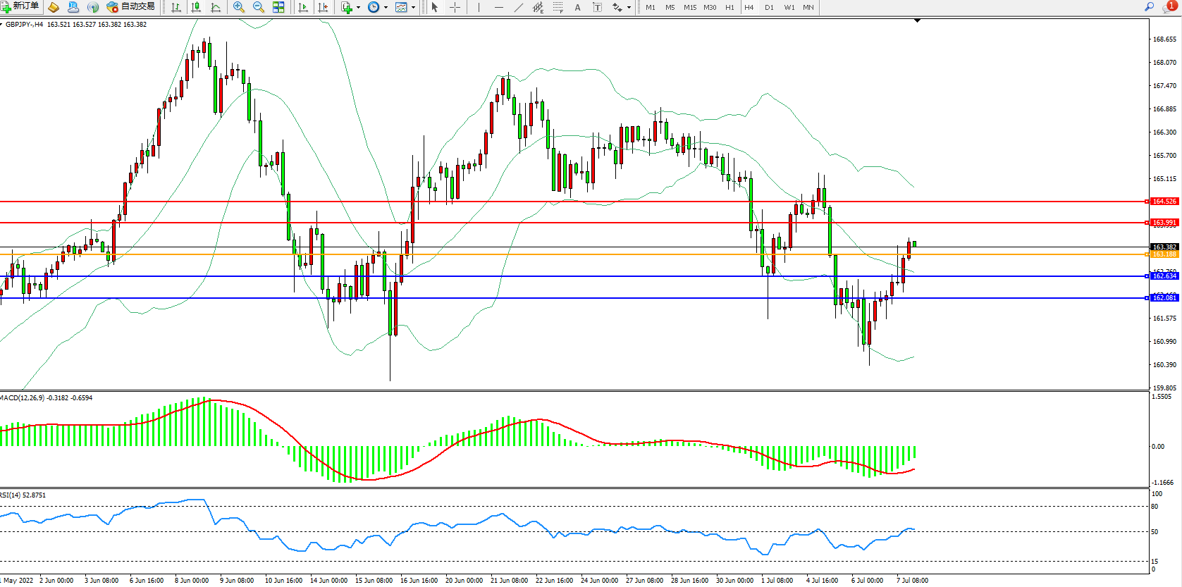 交易策略:163.188上方看涨,目标163.991、164.526