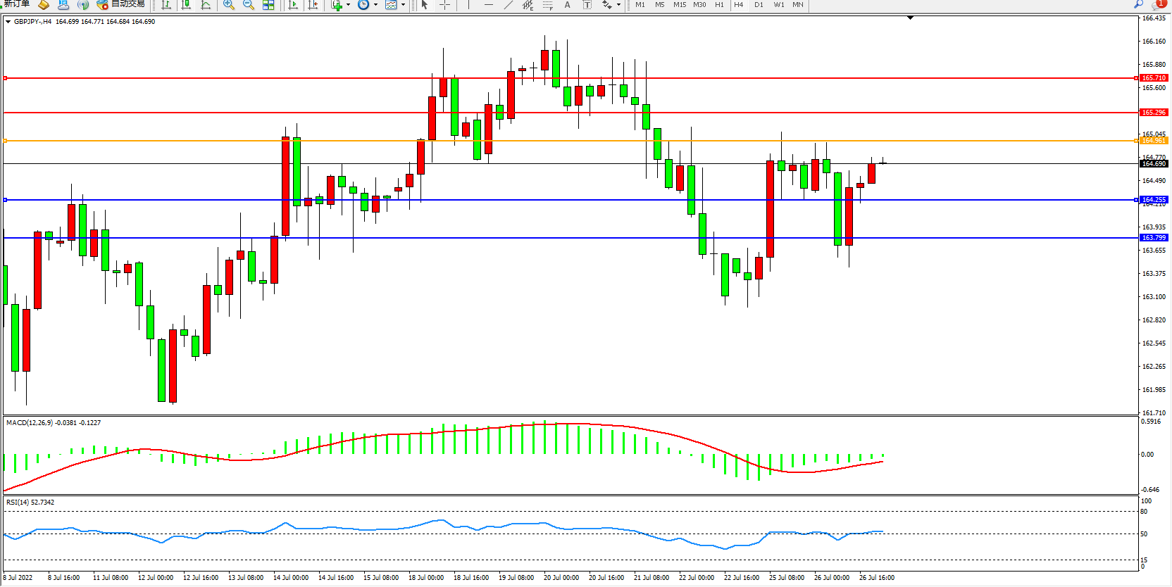 备选策略:164.961上方看涨,目标165.296、165.710
