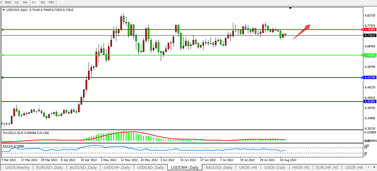 美元人民币USDCNH 日线图: