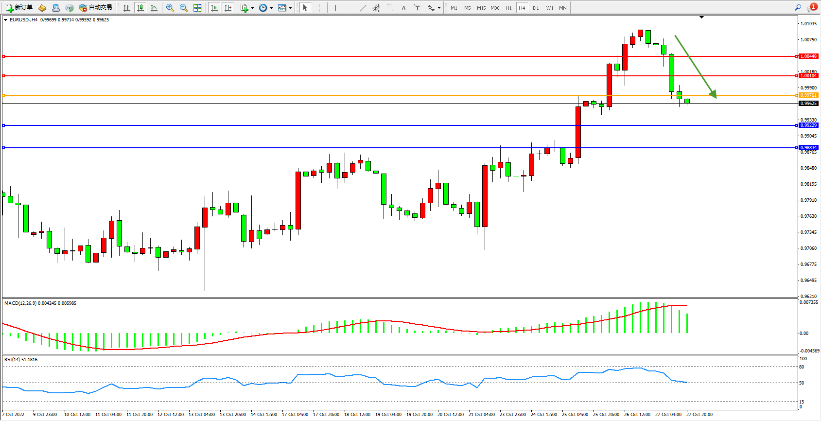 欧元美元EURUSD—4小时K线图显示: