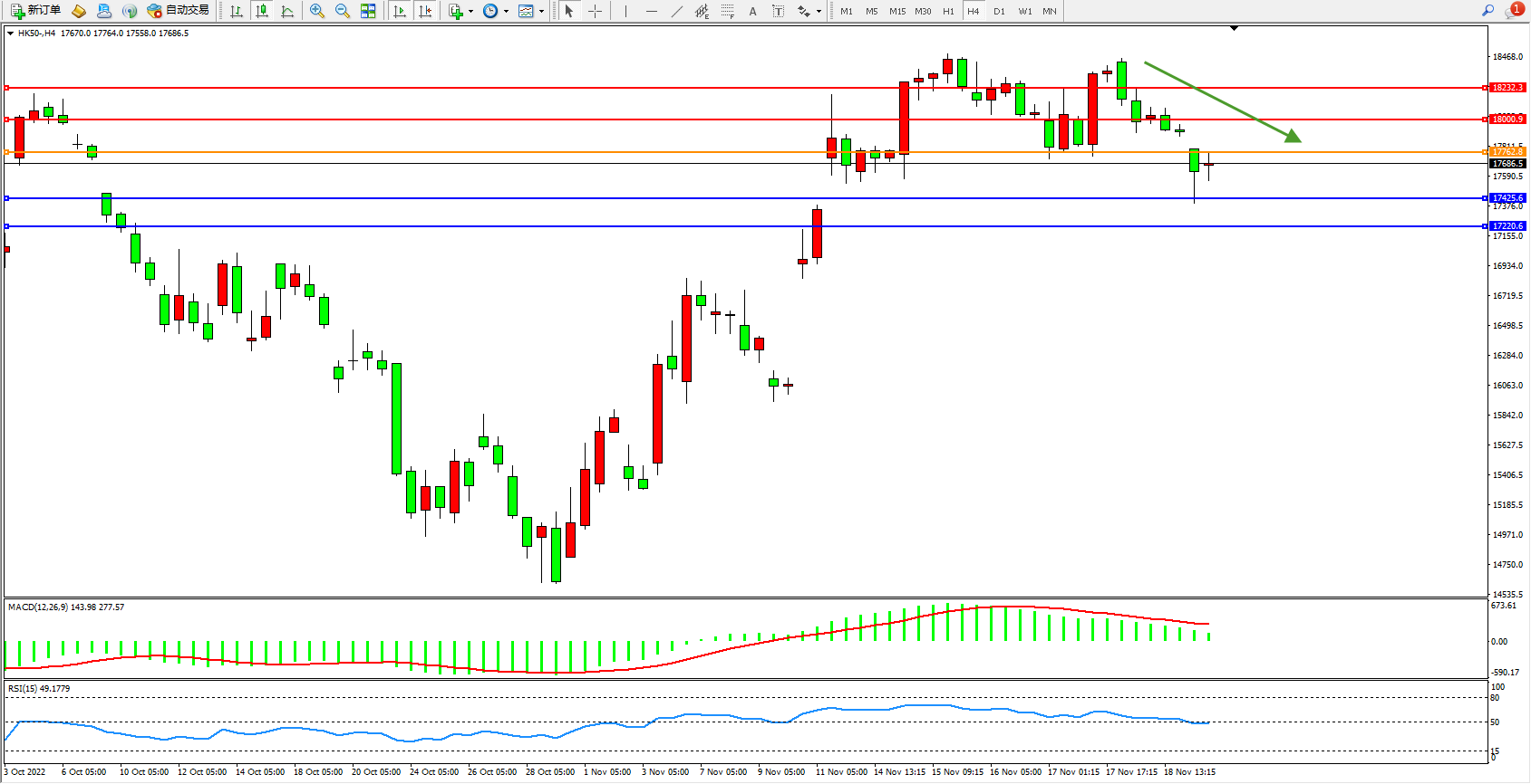 恒指HK50 4小时图