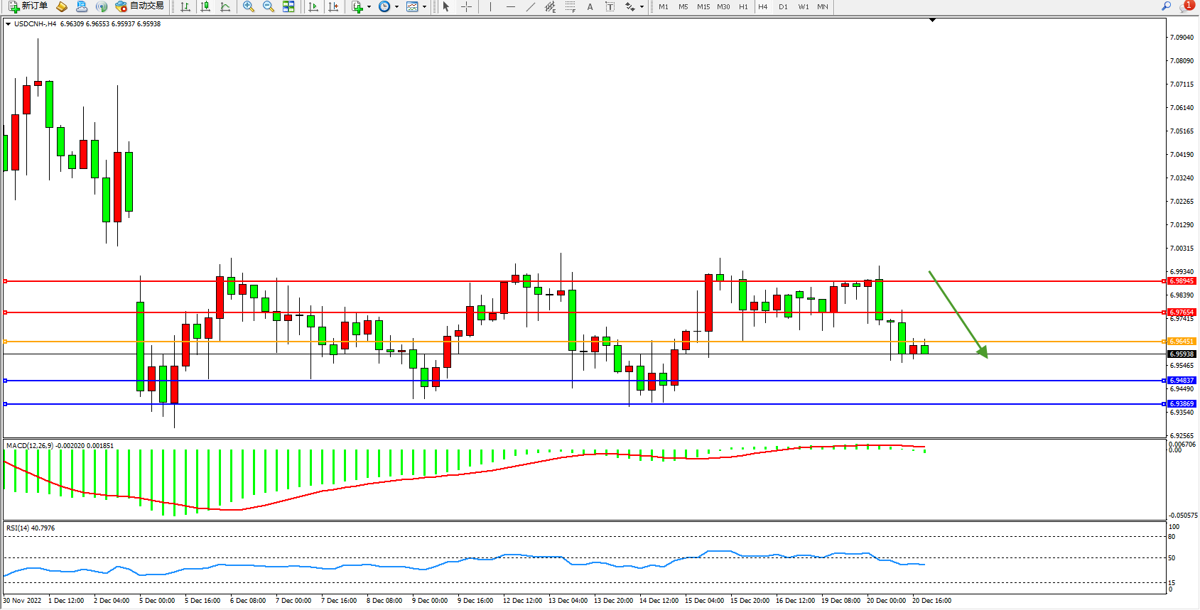 备选策略:6.96451上方看涨,目标6.97654、6.98945