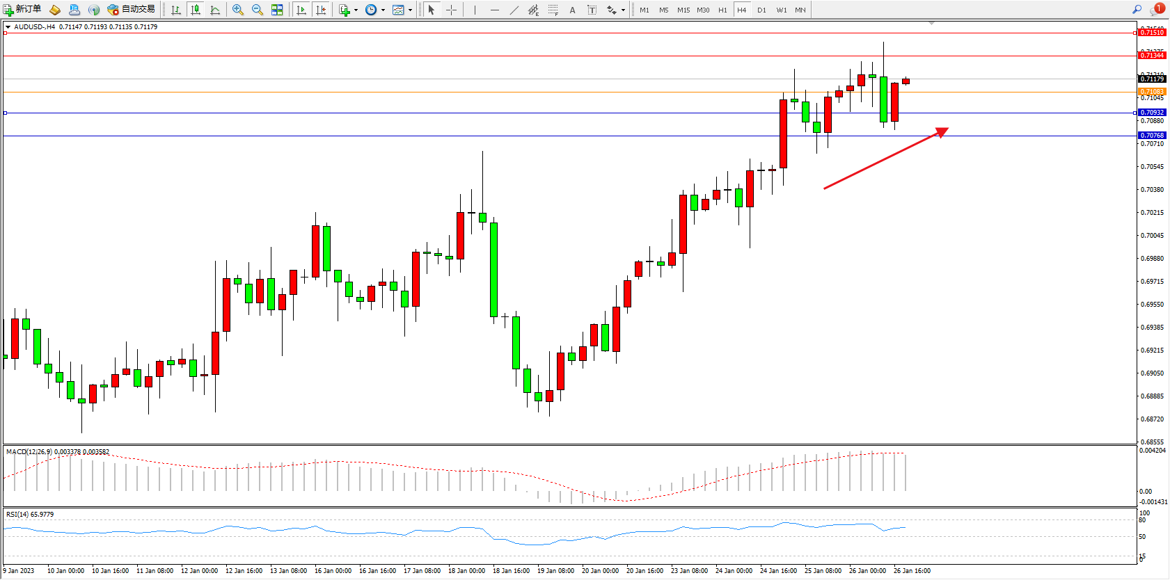 交易策略:0.71083上方看涨,目标0.71344、0.71510