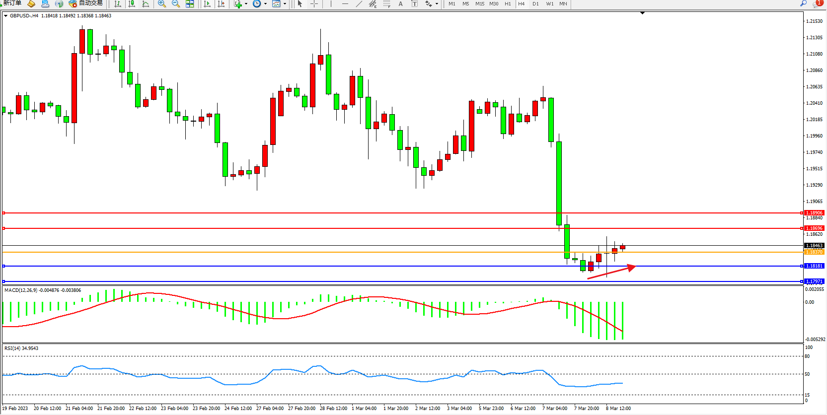 阻力位:1.18696 1.18906