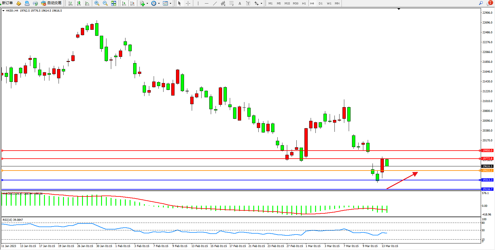 恒指HK50 4小时图
