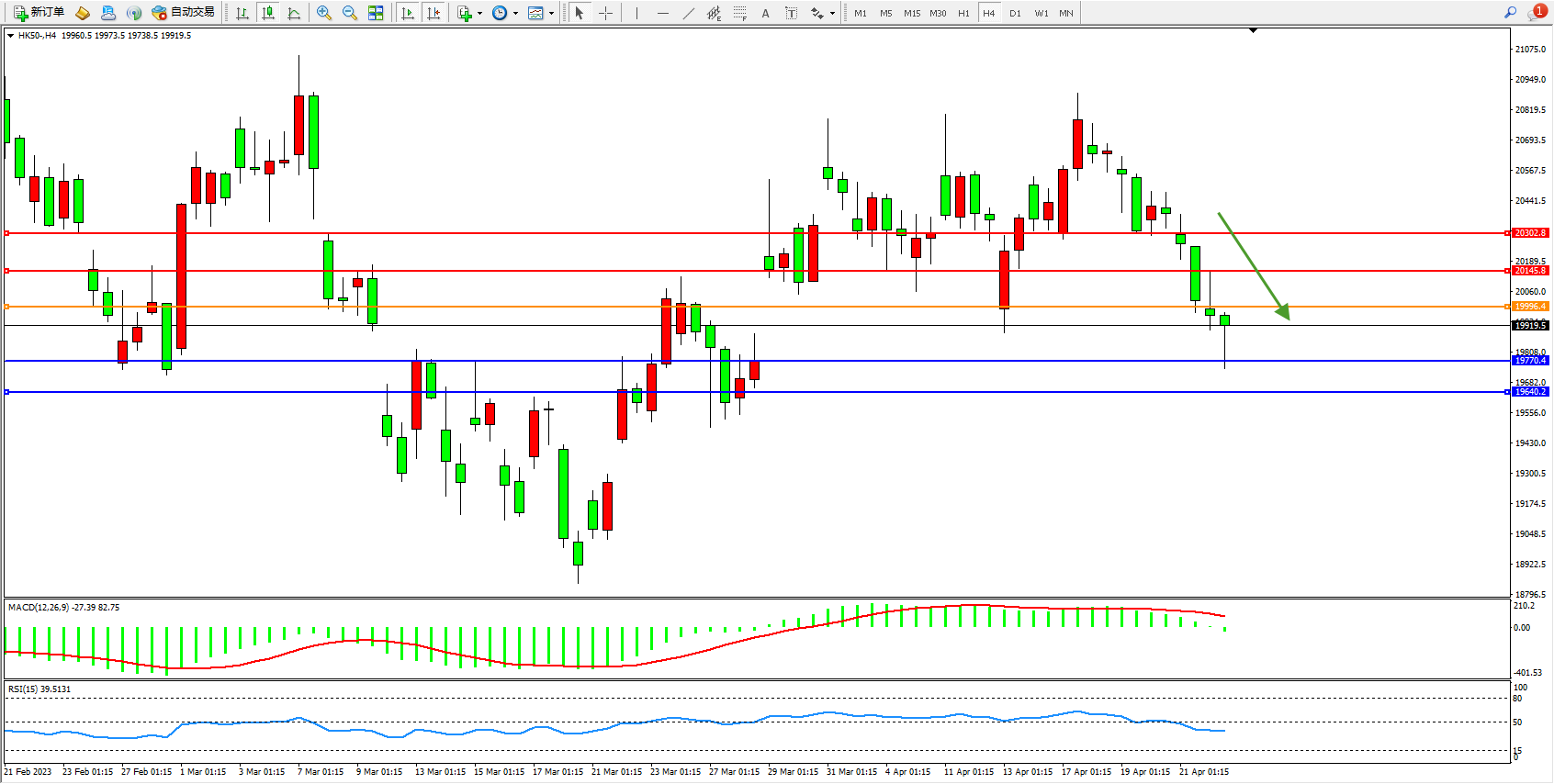 恒指HK50 4小时图
