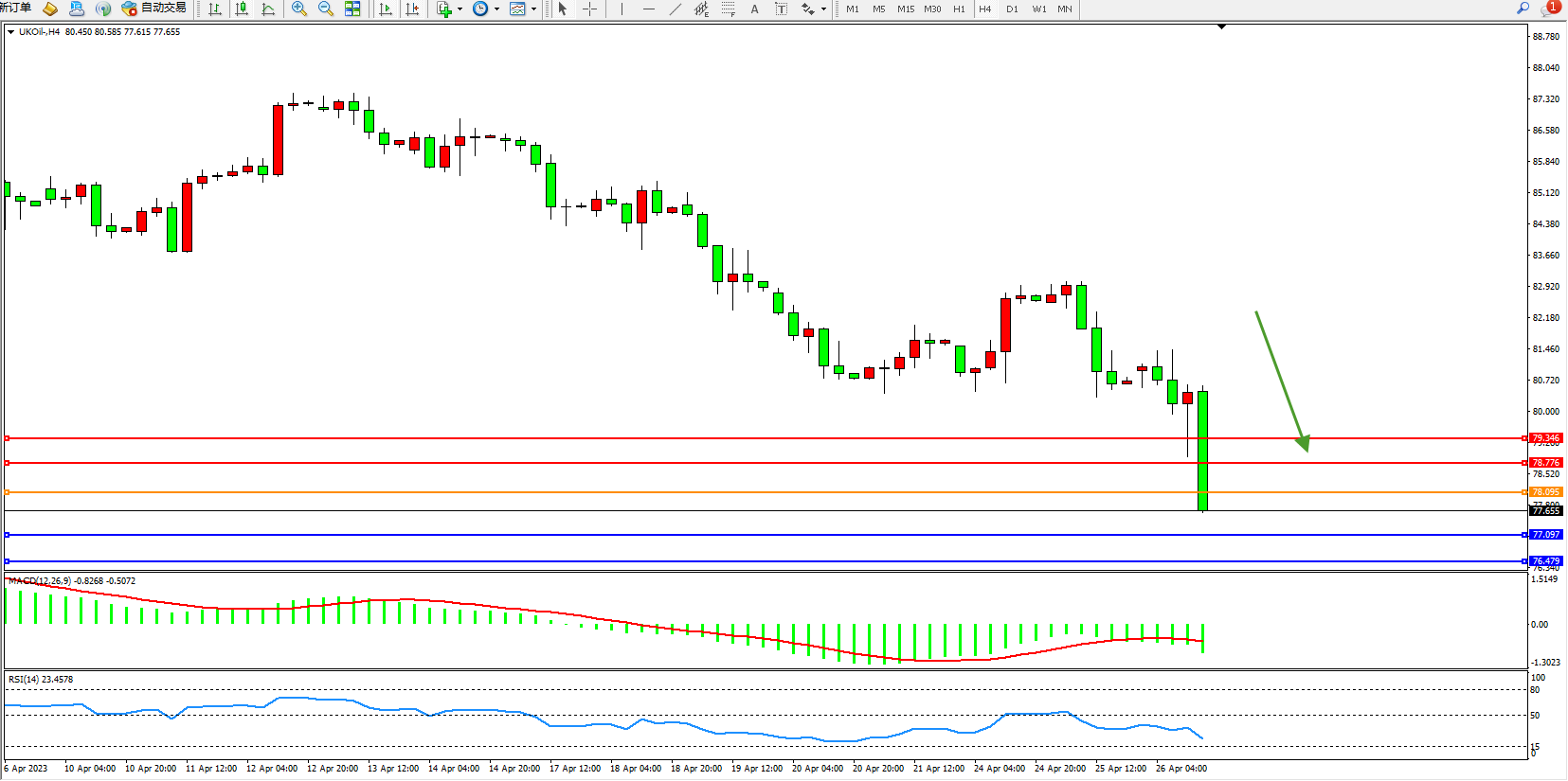 4小时图看:空头动力急速下挫,短期跌势或将持续,市场整体处于空头情绪中,MACD指标处于空头区域整理下移,RSI指标处于空头区域震荡下行;