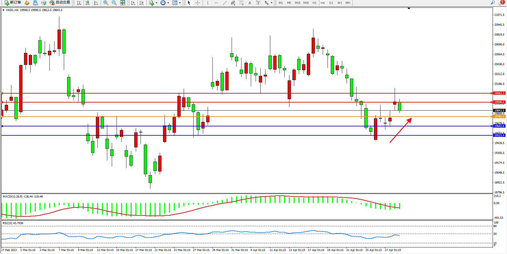 恒指HK50 4小时图