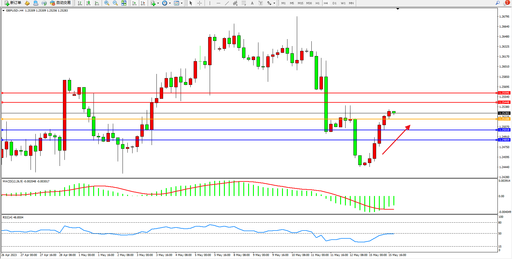 交易策略:1.25188上方看涨,目标1.25448  1.25595