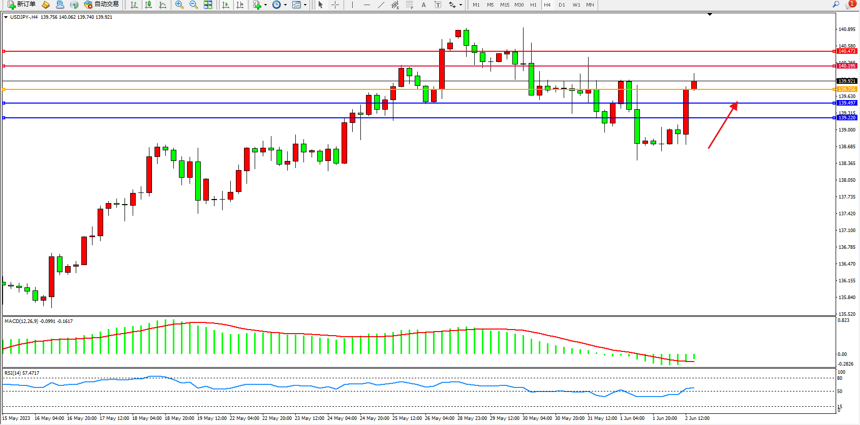 阻力位:140.195  140.473