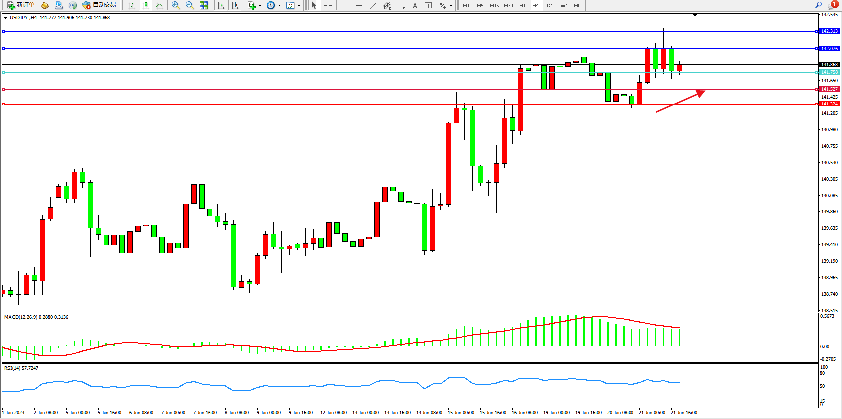 阻力位:142.076 142.313